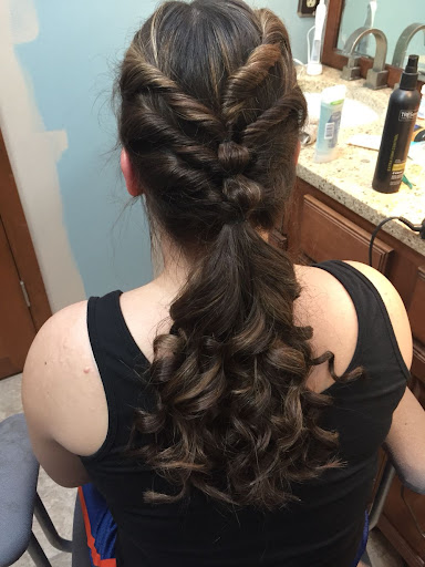 * Waterfall braid: A waterfall braid is a beautiful and romantic updo that is perfect for a high school dance. To create a waterfall braid, start by dividing your hair into three sections. Braid the first section of hair, then bring the second section over and under the first section. Continue braiding, alternating which section you bring over and under. Secure the braid with a hair elastic.